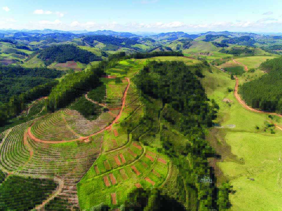 “A CBA recupera 100% as áreas mineradas”, aponta Luis Jorge Leal Nunes, seu diretor de Negócios Primários. Ele explica: durante a mineração, a cobertura de vegetação e o solo rico existentes sobre o minério são removidos e armazenados para uso posterior; assim que a mineração é encerrada, inicia-se a etapa de suavização do terreno para que o local volte a ter a configuração mais próxima possível da original. Em seguida, o solo rico em matéria orgânica é reaplicado, corrigindo a sua acidez e preparando-o para o plantio de espécies nativas da Mata Atlântica ou para atividades agrícolas (como o plantio de café), de pastagem ou silvicultura.